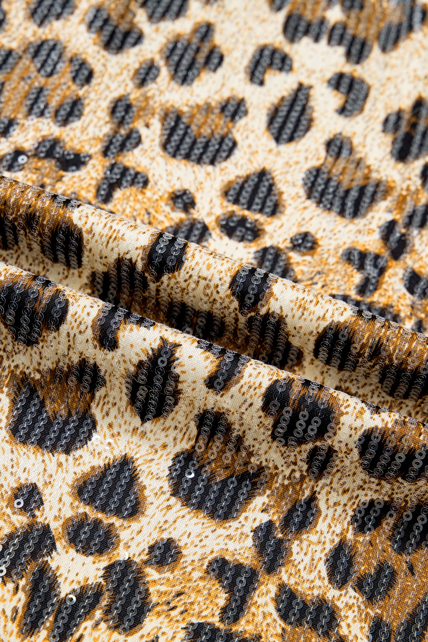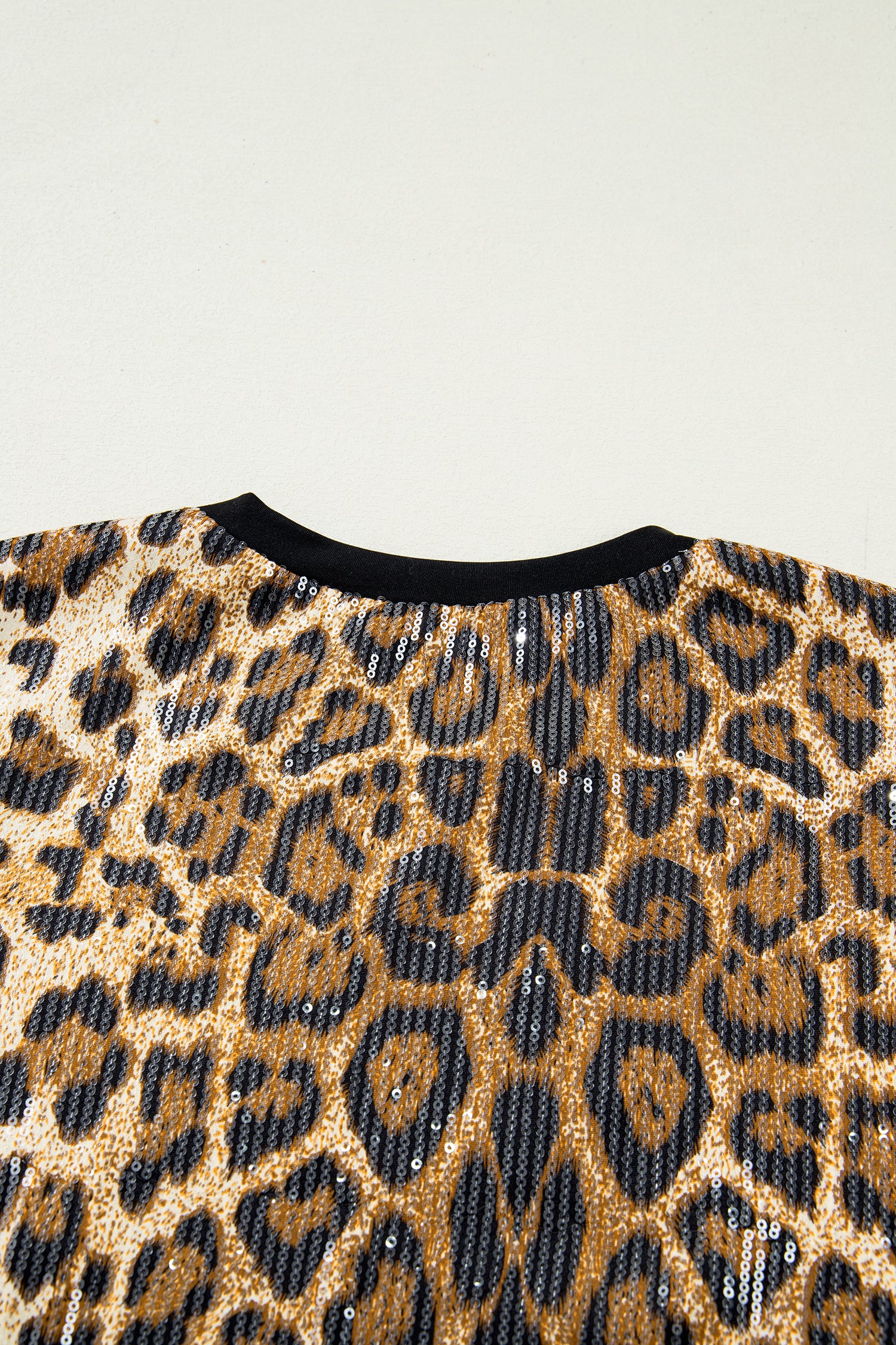 Brown Sequin Leopard Pattern Short Sleeve Top