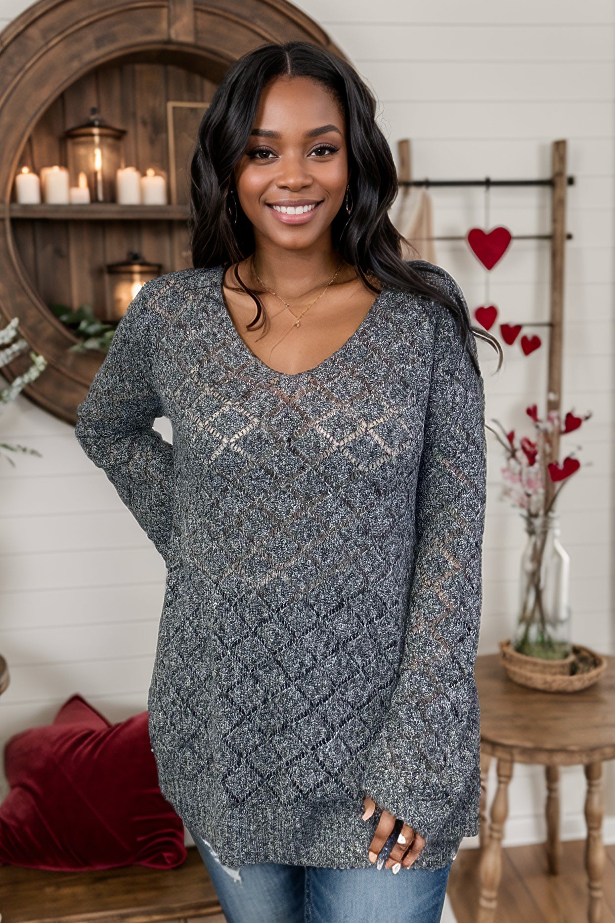 Unleash your inner seductress with the Femme Fatale sweater. This grey knit top features dramatic long bell sleeves, adding a touch of allure to any outfit. The subtle knit detail adds a hint of texture and depth, making it a must-have for any fashion-forward femme fatale.