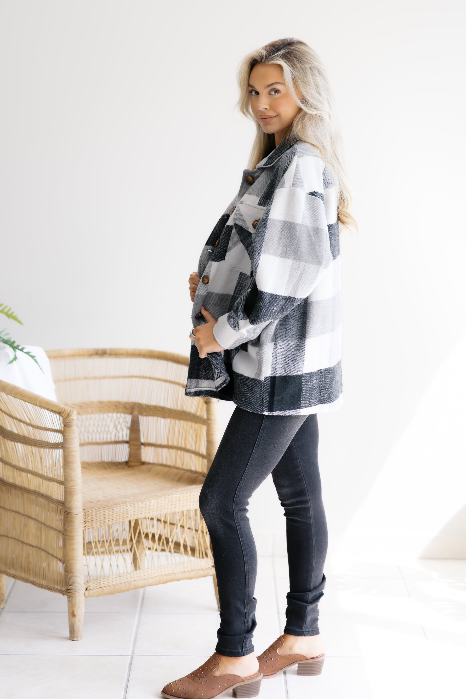 The Playbook Shacket is a cozy long-sleeve button-down made from soft, fuzzy plaid flannel. Featuring two chest pockets and convenient side pockets, it offers both style and practicality. Perfect for layering, this shacket adds warmth and a timeless plaid pattern to your outfit, making it an essential piece for cooler days. Stay comfortable and effortlessly stylish wherever you go.